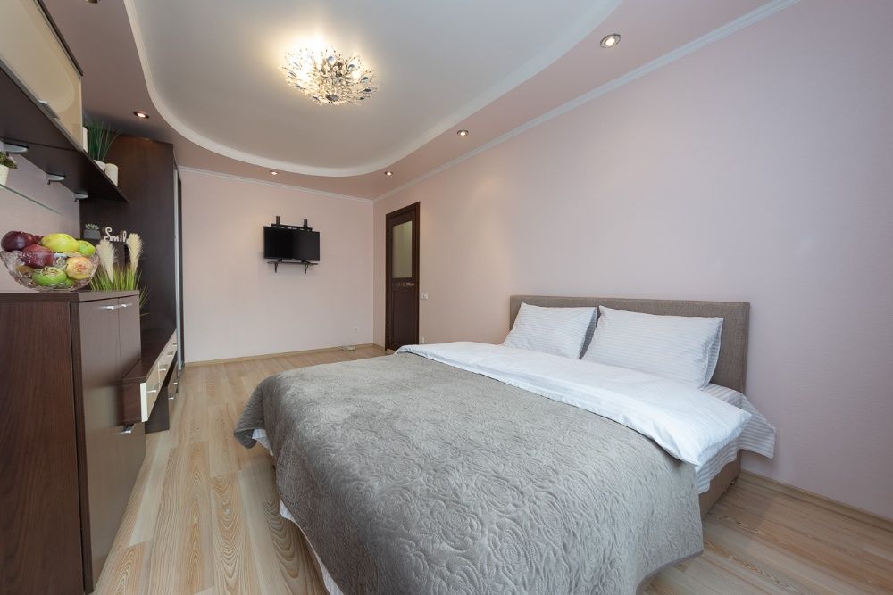 В квартире есть спальня с двуспальной кроватью, ортопедическим матрасом, телевизор с плоским экраном, большой раскладной двуспальный диван, а также полностью оборудованная современная кухня с микроволновой печью, холодильником, духовкой и плитой, посуда, санузел с ванной, стиральной машиной. Охраняемая территория возле дома, паркинг, детская площадка. В доме охрана, видеонаблюдение. Перед приездом гостей мы проводим обязательную уборку с дезинфекцией.